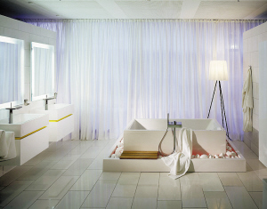 浴室在各個家居空間中,稱得上是人在其中能夠呈現(xiàn)最放松狀態(tài)的空間之一,因此在浴室設(shè)計方面,追求能夠令人松弛的效果也是即將到來的浴室主流風(fēng)格之一。體現(xiàn)這種趨勢,除了浴室空間的色彩組合搭配,更重要的是各種潔具及配件能夠從不同的角度真正為人們帶來充滿人性化的、方便舒適的使用效果。