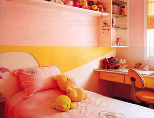 活潑、艷麗的色彩有助于塑造兒童開朗健康的心態(tài),還能改善室內亮度,形成明朗親切的室內環(huán)境。身處其中,孩子能產生安全感。粉紅、淡綠色、淡藍色都是很好的墻面裝飾色彩,太過亮麗的色彩只宜局部使用。