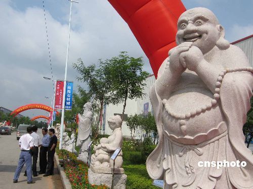 擁有600家閩南生產(chǎn)及經(jīng)營型企業(yè)的閩南產(chǎn)業(yè)園,8月18日在沈陽舉行開業(yè)慶典。同時(shí)舉行的2007中國(沈陽)石材文化博覽會(huì),設(shè)置海內(nèi)外天然石及精美石雕展示、惠安女特色表演、現(xiàn)場影雕表演等活動(dòng)。位于沈北新區(qū)的閩南產(chǎn)業(yè)園,目前有沈陽閩南國際石材城等閩商大型投資企業(yè)5家,投資總額近100億元人民幣。中新社發(fā)沈殿成 攝