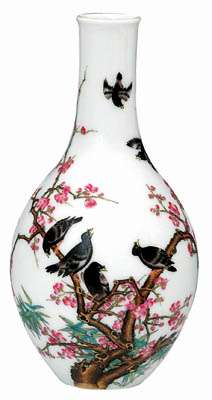 圖:仿清乾隆琺瑯彩?鵒報先春圖瓶
