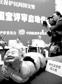 到2008年11月選出12件入圍藏品,最終由專家評(píng)審委員會(huì)集中評(píng)出6件民間國(guó)寶金獎(jiǎng)、6件民間國(guó)寶銀獎(jiǎng),所有入選的藏品也都將達(dá)到《國(guó)家文物藏品定級(jí)標(biāo)準(zhǔn)》之“一級(jí)文物”的標(biāo)準(zhǔn)。 攝影/本報(bào)記者 張雷