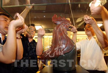 這批國寶流失海外140多年里,部分已經浮出水面。其中,牛首、虎首、猴首、豬首4件銅獸首已分別在2000年和2003年由中國有關方面斥資3700多萬元購回,目前正在新保利藝術博物館展出。而現(xiàn)已知的鼠首、兔首在法國巴黎收藏,馬首則在臺灣收藏家手中,并且即將出現(xiàn)在香港的拍賣市場。“在復制品中一部分是按照已經出現(xiàn)的獸首原型按照1比1的比例進行復制。”汲古閣的李連祥介紹,由于龍首、蛇首、羊首、雞首、狗首一直下落不明,也沒有任何可以參考的圖像資料,因此他們在復制過程中,只能根據大量文獻資料記載,并結合清代宮廷畫師郎世寧的繪畫設計藝術風格,通過無形仿制工藝,制作出了五首復制品。“雖然是陶瓷質地,但由于采用了完全手工做法,獸頭上細密的毛發(fā)和紫銅色釉面也非常相似。”李連祥透露,其中最為復雜的龍首是由經驗豐富的專家用了半年時間才復制成功。他自信地表示,這些從未露面的獸首復制品與原件的相似程度應該在80%左右。