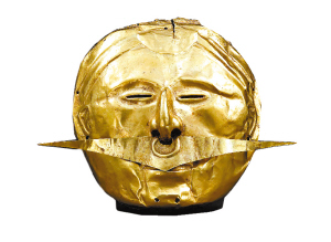 這是來自美洲的黃金面具。黃金在美洲人的信仰中,具有象征意義。它的珍貴被隱喻如同睿智的長老擁有的學(xué)識(shí)一般,是永傳后世且神圣無比的。