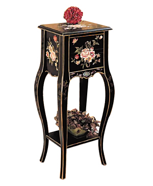 中式手繪家具:色彩尤其艷麗,紅、綠、黃、藍等濃墨重彩的純色居多,圖案富麗堂皇,畫工豐滿圓潤。家具線條感稍弱,但尤其注重彩繪的視覺效果。