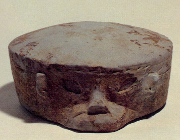 泥質(zhì)灰陶。直口,方唇,直壁,圜底,口部一側(cè)有流。近底部壓印一周曲線紋。倒置形似一頭肥豬,流部成豬首狀。五官俱全。表明豬在崧澤文化時期已成為馴養(yǎng)的家畜。
