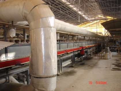 熊紅介紹說,陶瓷生產(chǎn)中一般采用燃燒柴油為干燥窯提供熱能,每條生產(chǎn)線每天在這個(gè)環(huán)節(jié)消耗柴油1。5噸,每噸4600元,合計(jì)4900元,全年節(jié)省能源費(fèi)用近1400萬元。金意陶的做法是,將輥道窯中的高溫氣體(最高可達(dá)1170-1200攝氏度)抽取出來,再注入注入干燥窯,因此再無必要通過燃燒柴油獲取熱量。