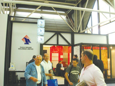 2007年10月2日至6日,代表世界行業(yè)高度和潮流趨勢的建陶展覽———意大利博羅尼亞CERSAIE展會如期舉行。“今年是鷹牌第10次唯一代表中國參加意大利博羅尼亞CERSAIE展會。雖然只有鷹牌一家中國企業(yè),但五星紅旗仍然高高飄揚在場館門口!