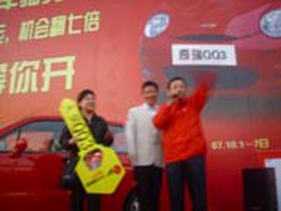 風(fēng)景club小區(qū)的新業(yè)主張女士幸運(yùn)摘得QQ大獎(jiǎng),在一片歡呼聲中,她接過(guò)了QQ車的“ 金”鑰匙。名正實(shí)規(guī)“幸運(yùn)大PK,QQ開(kāi)回家!