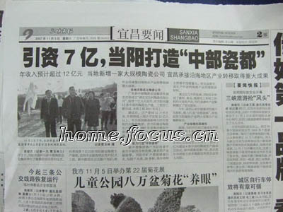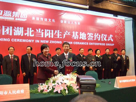 11月2日上午,當(dāng)陽(yáng)市政府與新中源陶瓷企業(yè)集團(tuán)在宜昌桃花嶺飯店舉行項(xiàng)目簽約儀式,新中源陶瓷企業(yè)集團(tuán)投資7億元在當(dāng)陽(yáng)建設(shè)陶瓷生產(chǎn)基地。