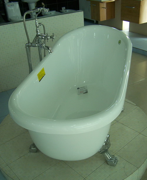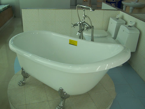 壓克力浴缸出現(xiàn)于20世紀(jì)80年代,是由浴缸專用壓克力板,經(jīng)用加熱到適當(dāng)溫度,在金屬模具上采用真空戲塑成型和熱處理,再在背面用噴涂裝置將短切纖維樹脂噴涂適當(dāng)厚度形成增強(qiáng)層,經(jīng)固化、切邊、磨削、拋光、檢驗(yàn)等多道工序制成。具有色彩一致不會(huì)褪色、表面硬度高(布氏硬度50以上)、重量輕、耐沖擊、保溫、容易清潔維護(hù)、便于搬運(yùn)安裝的特點(diǎn),可生產(chǎn)超大規(guī)格浴缸。浴缸專用壓克力板是一種經(jīng)改性的有機(jī)玻璃材料,在硬度和衛(wèi)生安全性(熱水浸出物的有害物質(zhì)含量)兩方面得到改進(jìn)。這種新型的浴缸材料和專用的制造技術(shù)保證了產(chǎn)品質(zhì)量的穩(wěn)定,風(fēng)靡全球,只有進(jìn)口材料或被授予該專利使用權(quán)的企業(yè)可生產(chǎn)這種板材。但是市場(chǎng)上有廉價(jià)的壓克力浴缸,零售價(jià)還不到正常板材的材料價(jià),存在著采用其他材料冒充浴缸專用壓克力板的可能,作為與壓克力板有相同化學(xué)名稱的普通有機(jī)玻璃也是其中之一,消費(fèi)者必須引起注意。優(yōu)質(zhì)的壓克力浴缸是用浴缸專用板,厚度應(yīng)在3mm以上,這是由于壓克力板在真空吸塑成型時(shí)底角部位的伸長(zhǎng)率最大,要求板的厚度與浴缸的深度相匹配,有的企業(yè)在產(chǎn)品上標(biāo)明板材的厚度為3.5—4mm,受到用戶的歡迎;普通壓克力板的硬度低、耐熱性較差、伸長(zhǎng)率較低,容易發(fā)生底角發(fā)白變色,板面容易褪色起毛。也有用壓克力和ABS復(fù)合板生產(chǎn)的浴缸,由于兩種材料的收縮率不同,可能在長(zhǎng)期使用中出現(xiàn)產(chǎn)生分層和開裂現(xiàn)象,但由于售價(jià)較低,仍占有一定的市場(chǎng)。