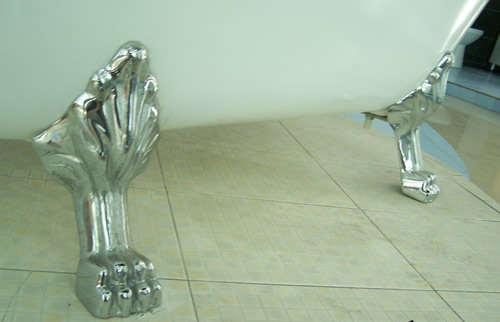 圖為浴缸腳架,可以任意挪動(dòng),隨意擺放,省去了安裝的麻煩,也方便清洗地面,不會(huì)讓地面有污垢生成!但金屬質(zhì)感不好。