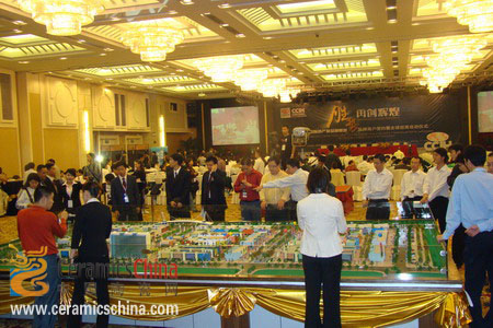 本網(wǎng)記者 蘇振明 攝影報(bào)道 11月16日下午,“中國陶瓷產(chǎn)業(yè)總部基地”品牌商戶簽約暨全球招商啟動(dòng)儀式,在佛山賓館隆重舉行。中國建筑衛(wèi)生陶瓷協(xié)會(huì)會(huì)長(zhǎng)丁衛(wèi)東、中國建筑衛(wèi)生陶瓷協(xié)會(huì)副秘書長(zhǎng)夏高生、禪城區(qū)區(qū)委副書記、區(qū)長(zhǎng)梁維東、佛山市經(jīng)貿(mào)局局長(zhǎng)李堅(jiān)、佛山市人民政府辦公室副主任馬時(shí)光、禪城區(qū)常委、常務(wù)副區(qū)長(zhǎng)劉宏葆、禪城區(qū)人民政府副秘書長(zhǎng)吳志偉、南莊鎮(zhèn)鎮(zhèn)長(zhǎng)高成建等領(lǐng)導(dǎo),中國陶瓷產(chǎn)業(yè)總部基地的營運(yùn)商佛山陶瓷城發(fā)展有限公司董事長(zhǎng)何新明,以及各知名陶瓷企業(yè)的代表和各大新聞媒體領(lǐng)導(dǎo)、記者等500多人出席了儀式。