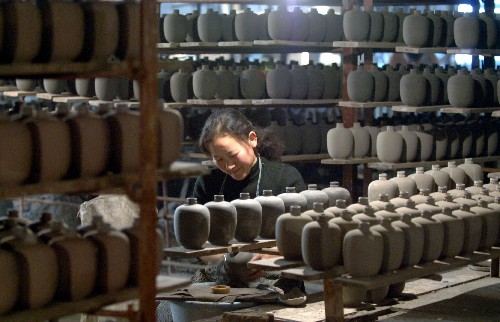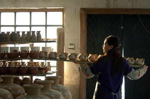 11月28日,在河北省峰峰礦區(qū)彭城古鎮(zhèn)一個磁州窯作坊,工人正在搬運磁州窯制品。磁州窯是中國著名的民間陶瓷窯系,因其主要窯場位于古代磁州,即今天的河北峰峰礦區(qū)彭城、磁縣一帶而得名。磁州窯瓷器保留了大量古代民間繪畫、書法及反映民俗民風的實物資料,形成了質樸、灑脫、明快、豪放的藝術風格,富有濃郁的民間色彩和鮮明的民族特色。 目前,河北峰峰礦區(qū)彭城古鎮(zhèn)仍有40多家利用古作坊和家庭居房開設的民間陶藝作坊,一批陶瓷藝人和民間工藝美術師仍在傳承著古老的磁州窯制作工藝。但磁州窯燒制技藝也面臨著老藝人退休、傳統(tǒng)生產方式和制作觀念改變、生產資金缺乏、傳統(tǒng)手工工藝失傳的危險,亟待搶救和保護。  新華社記者 鞏志宏 攝