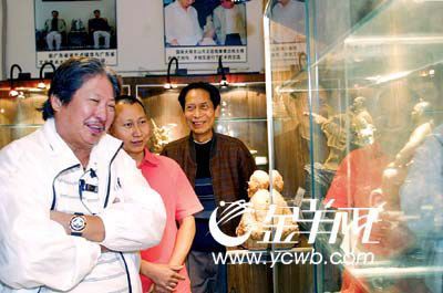 本報訊記者丁華、胡練宇攝影報道:上周五下午,知名香港武打影星洪金寶一行五人來到佛山石灣美術(shù)陶瓷廠參觀,并拜訪了黃松堅、黃志偉兩位陶藝大師。“果然名不虛傳!”在佛山美術(shù)陶瓷廠,面對風格各顯的眾多大師作品,洪金寶一再駐足欣賞,感嘆連連。在國家級陶藝大師黃松堅的工作室里,一件主題為《一代宗師》的黃飛鴻的陶塑像令洪金寶眼前一亮。黃松堅介紹,《黃飛鴻》是一個系列,一套共有《王者之風》、《男兒當自強》、《無影腳》《一代宗師》四樽塑像,是其子黃志偉的得意之作。這些塑像都放置在黃志偉的工作室,那里離美陶廠有好幾公里。不顧隨行人員“還得趕回去”的提醒,洪金寶一行還是驅(qū)車20多分鐘到黃志偉的工作室。