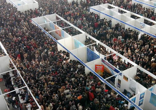 相對(duì)往年景象,今年招聘現(xiàn)場(chǎng)氣氛之熱烈是筆者所沒(méi)有想到的。招聘會(huì)從早上8點(diǎn)開(kāi)始,一直到下午的3點(diǎn),現(xiàn)場(chǎng)還是“人山人海”,雖然有的崗位只招2人,卻有四五十人排隊(duì)?wèi)?yīng)聘,每家企業(yè)都收到簡(jiǎn)歷100多份,多者甚至有幾百份。據(jù)企業(yè)代表反映,現(xiàn)在的大學(xué)生就業(yè)心態(tài)普遍平和,甚至有不少學(xué)生表示,只要有工作,做什么都可以。