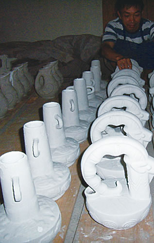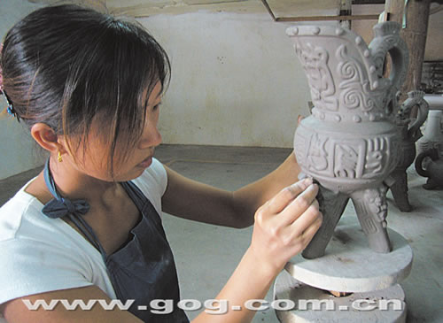 牙舟鎮(zhèn)冗平街的青年張祿麒在廣東打工已經(jīng)有14年了。去年10月他返回家鄉(xiāng),投資8萬元?jiǎng)?chuàng)辦了“牙舟工藝美術(shù)陶瓷廠”,在牙舟開始第一家以“廠”的名譽(yù)進(jìn)行陶瓷生產(chǎn)。7月26日,記者在采訪他時(shí),他說出了回家辦廠的初衷,他父親這一代,已經(jīng)是第七代制陶人了,“現(xiàn)在的年輕人都不愿意摸牙舟陶了,以前的老藝人也只有六七個(gè)了。如果再這樣下去,牙舟陶就真的失傳,牙舟陶就再也沒有明天了”,張祿麒決定回家接過老父親的手藝,把牙舟陶傳下去。經(jīng)過快一年的摸索,張祿麒的牙舟陶廠已經(jīng)發(fā)展得相當(dāng)不錯(cuò)了,他滿臉笑意地說:“現(xiàn)在根本就不用我出去找市場(chǎng),有人上門來收,只怕做不出來。貴陽、甘肅、香港的客商都有。”但同時(shí),張祿麒說,光有自己一家辦廠還是不行,他希望有更多的人來這里投資辦廠,共同做大牙舟陶的品牌和規(guī)模,“我不怕競(jìng)爭(zhēng),競(jìng)爭(zhēng)就會(huì)有市場(chǎng),就會(huì)了質(zhì)量”。