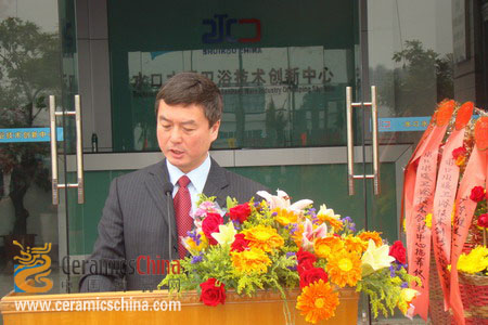 。ū揪W(wǎng)訊 主編 蘇振明 特約記者 洪秀明 攝影報(bào)道)12月5日下午三時(shí),水口水暖衛(wèi)浴技術(shù)創(chuàng)新中心彩旗飄揚(yáng)、鑼鼓喧天,一派節(jié)日氣氛。開平市人民政府和水口鎮(zhèn)人民政府聯(lián)合舉行水口水暖衛(wèi)浴技術(shù)創(chuàng)新中心舉行落成揭幕儀式。出席揭幕儀式的領(lǐng)導(dǎo)和嘉賓有:中國建筑衛(wèi)生陶瓷協(xié)會(huì)會(huì)長丁衛(wèi)東、秘書長繆斌,廣東省科技廳發(fā)展計(jì)劃處處長姚化榮,江門市科技局副局長李健群以及開平市市長吳平超,市人大副主任司徒堯滾,常務(wù)副市長梁和,、副市長陳靖,市政協(xié)副主席杜海英,水口鎮(zhèn)領(lǐng)導(dǎo)班子成員等。