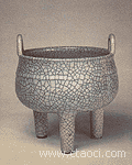 哥窯  宋代五大名窯之一,在浙江龍泉。燒制的青瓷有各式碗、盤、瓶、爐等,,典型器物有琮式瓶、貫耳瓶、鬲式爐、蓮瓣碗等。有的器物有刻劃、堆塑等裝飾,哥窯瓷采用多次施釉的工藝,使青釉濃厚青翠,色彩幽深,創(chuàng)出了粉青、梅子青等絕頂釉色,把青瓷的美,推到了一個新的境界。哥窯青瓷釉上有細(xì)碎的開片,稱作“百圾碎”,更小的叫“魚子紋”,把原本是缺陷的開片變成瓷器表面自然天成的裝飾,說明工匠們已經(jīng)掌握了開片的規(guī)律,可以人為地加以控制和利用,這只有在制瓷工藝達(dá)到高峰的宋代才能做到。