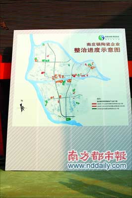南莊一些陶企廠區(qū)內(nèi)貼有整治計(jì)劃進(jìn)度表。