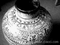 我們把以上的磁州窯系酒壇及在文物市場上常見到的磁州窯酒壇比較分析,不難發(fā)現(xiàn)它們的制作工藝特征及裝飾風(fēng)格有較大的相似性: