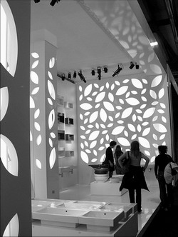 設(shè)計(jì)師何朝富說(shuō),ArtDeco是一種將圖案鏤繪在家居中的華麗藝術(shù),作為上世紀(jì)20年代ArtDeco裝飾風(fēng)格的輪回,荷蘭人托德布歇爾將其在奢侈品行業(yè)內(nèi)重新演繹并吸引了全世界的眼球,ArtDeco風(fēng)潮首先出現(xiàn)在時(shí)裝界“最大膽、最具戲劇效果”的麥考林高級(jí)成衣店的店內(nèi)裝飾中。此次米蘭衛(wèi)浴展上,像CATALANO,REGIA等國(guó)際衛(wèi)浴品牌都把ARTDECO新裝飾主義貫徹得很到位,CATALANO甚至將整個(gè)展館的幾面墻面都采用了雕鏤樹(shù)葉圖案,片片“樹(shù)葉”中透出柔和的燈光,讓展館顯得靈動(dòng)而浪漫,成為ARTDECO最佳的立體詮釋?zhuān)欢鳵EGIA則將衛(wèi)浴間的墻面以ARTDECO風(fēng)格鋪陳出一派黑白風(fēng)情,夸張的鏤花圖案在墻面上大膽張揚(yáng),衛(wèi)浴間的玻璃門(mén)、鏡面、浴室家具上都鏤繪著各種取自森林藤蔓、花卉、昆蟲(chóng)蝴蝶的圖案,讓衛(wèi)浴的表情變得細(xì)膩多情。
