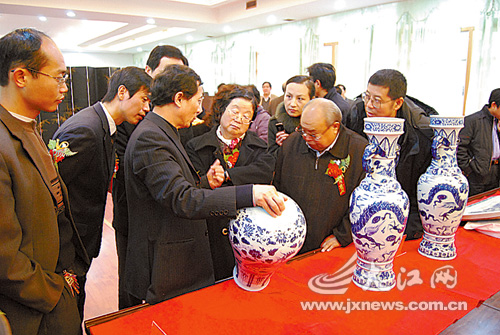 本報撫州訊 李俊、記者周文平攝影報道:身世神秘且存世稀少的元代青花瓷器,是我國陶瓷文化的一朵奇葩。27日,元代青花瓷器研究課題論證會在撫州舉行,30件元代青花瓷公開亮相,吸引了首都博物館原館長馬希桂、中國古陶瓷研究會副會長、故宮博物院研究員李輝炳等全國10余位專家到來。