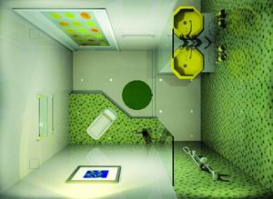 濕區(qū)和干區(qū)用擋水條分隔,擋水條由鋼化玻璃以及活動的浴簾組成,兩邊的玻璃隔斷寬420mm,中間有660mm寬的門洞,出入自如。