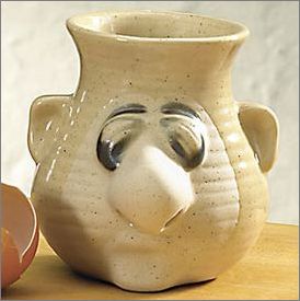 它由陶瓷制成,不過外形上看上去很特別,被做成了一個(gè)大鼻子先生的樣子。這也正是其創(chuàng)意的獨(dú)到之處,你只要將蛋殼敲碎,將雞蛋放進(jìn)這個(gè)容器里面,然后慢慢傾斜,它就能夠讓蛋清流出,留住蛋黃。不過,當(dāng)?shù)扒鍙乃拇蟊亲永锩媪鞒鰜頃r(shí),就像是一股股的鼻涕一樣……