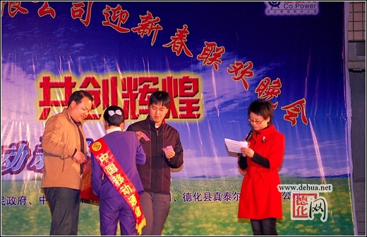 【德化網(wǎng) 訊】伴隨著一首《飛得更高》激昂的歌曲,20日晚,真泰爾陶瓷有限公司“暢享移動(dòng)新生活”迎新春聯(lián)歡晚會(huì)在三班鎮(zhèn)徐徐拉開(kāi)帷幕。真泰爾與德化移動(dòng)公司的員工們載著07年豐碩成果和對(duì)新年的熱切期望歡聚一堂,喜迎新春。整臺(tái)晚會(huì)過(guò)程中,臺(tái)上臺(tái)下歌聲、笑聲、鞭炮聲、音樂(lè)聲交織成一曲動(dòng)人的交響樂(lè),歡樂(lè)融洽的氣氛感染著每一個(gè)身臨其中的人。晚會(huì)由縣團(tuán)委、三班鎮(zhèn)政府、真泰爾陶瓷有限公司、德化移動(dòng)共同舉辦。