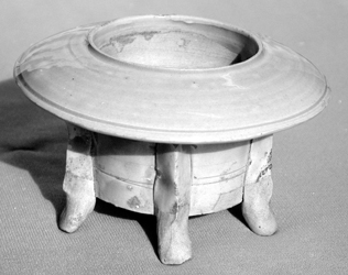 我以前曾將此類器物歸入油燈類,后經研究發(fā)現(xiàn),如果是日常使用的油燈的話,內胎應該施釉的,否則油要滲透到胎里,會造成油料浪費,聰明的先人不會做出如此愚笨的事情。因此,我認定它是一種造型別致的香爐。后來,在耀州窯博物館,我看到這種類型的器物果然標識為香爐。