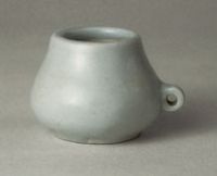 說 明: 直口,鼓腹,造型似蔥頭。施卵白釉,略泛青色。