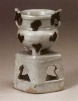 青白釉褐彩雙耳連座爐