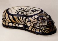 赭彩黑花虎形枕