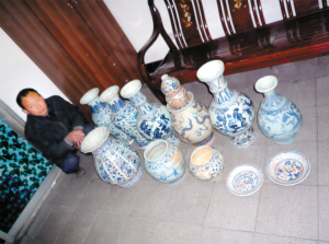 王平說,本來他是抱著試試看的心態(tài)等待對方與自己聯(lián)系,誰知他們還真把東西拿來了。一看到那些瓷器王平就蒙了,整個人陷在興奮和喜悅中不能自拔。對方先是提供了古瓷片做樣本,又自稱“盜墓賊”,現(xiàn)在又拿出了東西,所有的一切都使王平相信自己這次是找到“寶藏”了。