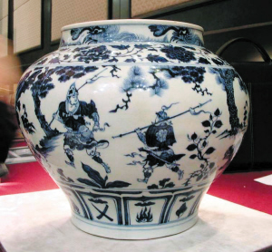 元青花瓷尤以人物畫最為珍貴。2005年,一件名為“鬼谷下山”(上圖)的元代青花圖瓷罐曾在倫敦拍出1568.8萬(wàn)英鎊的高價(jià),從而創(chuàng)下當(dāng)時(shí)中國(guó)藝術(shù)品拍賣的最高成交價(jià)。