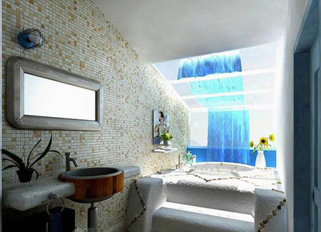 通過圍合空間的界面處理來體現(xiàn)格調(diào),如地面的拼花、墻面的劃分、材質(zhì)的對(duì)比、洗手臺(tái)面的處理、鏡面和畫框的做法以及貯存柜的設(shè)計(jì)。裝修設(shè)計(jì)應(yīng)考慮潔具的形狀、風(fēng)格對(duì)其產(chǎn)生的影響,應(yīng)相互協(xié)調(diào),同時(shí)在做法上要精細(xì),尤其是裝修與潔具相互銜接部位上,如浴缸的收口及側(cè)壁的處理,洗手化妝臺(tái)面與面盆的銜接方式,精細(xì)巧妙的做法能反映衛(wèi)生間的品格。