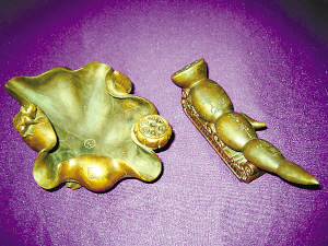沈貴老師:從圖片判斷兩件器物的材質(zhì)應該是紫砂,但應該不是舊時物品,而是近年制作的工藝品。不過其工藝精細,如要進一步鑒定需要觀看實物。