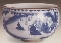 青花人物凈水碗
