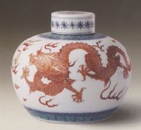 說(shuō) 明: 此器以斗彩作輔助紋飾,襯托礬紅彩龍鳳主題紋飾,產(chǎn)生特殊的藝術(shù)效果,是康熙斗彩瓷器中綜合裝飾技法的具體體現(xiàn).