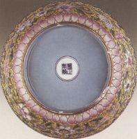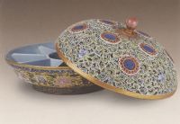 說 明: 此盒鏤雕技法精巧細膩,雖裝飾繁密,但層次分明,繁而不亂.此種將粉彩與鏤空相結(jié)合的技法,至乾隆時曾被大量使用.