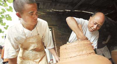 胡老耐心教徒弟錢(qián)正才學(xué)習(xí)長(zhǎng)沙銅官窯的制作技藝。