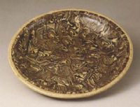 說 明: 胎體較厚,含雜質(zhì)較多,施淡黃色釉,釉薄且亮.內(nèi)外飾由白色和赭色組成的木紋圖案.這種由不同色調(diào)的胎料絞合成所需要的圖案.是唐宋時期特殊的陶瓷裝飾藝術(shù).