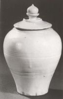 說 明: 胎質(zhì)細(xì)白,釉色乳白有漿釉垂痕.芒口毛足.采用堆貼和劃花技法,紋飾簡練.造型俊秀.