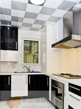 廚房可以用經典來形容,灰白的鋁扣板給人的感覺既現代又干凈,鋁扣板在日常使用或清洗起來也是相當方便的,是很多年輕人的首選。黑白配的櫥柜使空間看起來更明亮更開闊,相信這廚房其實只有五平米的空間嗎?其實這是真的,F在廚房空間都不是很大,但要塞的東西卻很多,零零碎碎的放到一起很擁擠,色彩沒有搭配得當就會使空間看起來更狹小更凌亂,所以廚房裝修得考慮色彩的整體效果。