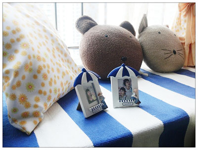 床是一艘行駛的海盜船,這浪漫風格怎么過渡到海洋風格的好,偶可是思前想后了很久,最后還是靈機一動把宜家99元的地毯墊子鋪了上去,明黃和海藍的激烈碰撞,乳白中和,視覺沖擊強烈。