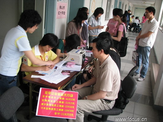 截止到18日,宏宇陶瓷企業(yè)以單位名義捐款100萬元,宏宇企業(yè)禪城區(qū)全體員工捐款合計(jì)11.6355萬元,另外南海獅山和清遠(yuǎn)市的兩個(gè)生產(chǎn)基地的募捐分別為10.73703萬元和11.39242萬元。宏宇企業(yè)捐款合計(jì)133.82165萬元。