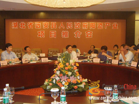 5月30日下午3:30分,“湖北省遠(yuǎn)安縣陶瓷產(chǎn)業(yè)項(xiàng)目推介會(huì)” 在佛山賓館3樓會(huì)議廳召開。廣東省發(fā)改委,佛山市人民政府、禪城區(qū)人民政府、佛山發(fā)改委,經(jīng)貿(mào)局,佛山市陶瓷行業(yè)協(xié)會(huì),佛山工商業(yè)等領(lǐng)導(dǎo)及新明珠陶瓷公司,廣東佛陶公司,三水維納爾陶瓷公司,佛山市歐陶無機(jī)材料有限公司,佛山恒諾陶瓷公司,三水祥順陶瓷公司,廣東新中源陶瓷公司,廣東新潤城陶瓷公司等部分在廣東省陶瓷界有一定影響力的企業(yè)代表參加了此次推介會(huì)。