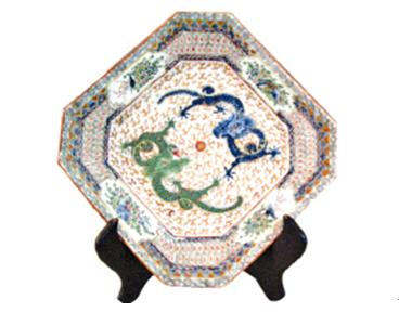 葉潔瑜從另兩位讀者發(fā)來(lái)的圖片中鑒定出,一件是光緒“青花花口葉紋盤”,另一件是光緒“廣彩雙龍方盤”。外銷瓷,指在中國(guó)生產(chǎn)、專門銷往國(guó)外的陶瓷器。歷史上出口的瓷器中,以景德鎮(zhèn)生產(chǎn)的青花瓷為最大宗。不過(guò),廣州也發(fā)展了自己的瓷器品種。那就是獨(dú)具特色的“廣彩”。