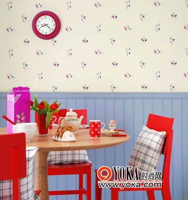 造型師建議:配飾和家具的顏色盡量從壁紙的顏色中選取。這樣的搭配比較安全而且效果出眾。