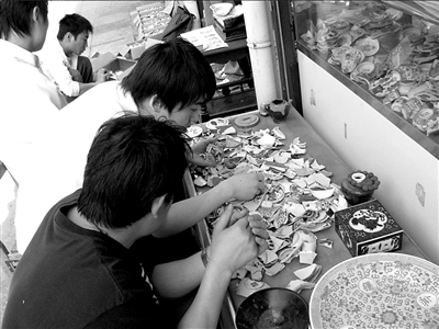 日前,記者在潘家園舊貨市場(chǎng)看到,很多瓷器愛(ài)好者在一堆堆殘片中淘寶。不了解收藏的人或許很難想象,由于收藏完整的高古瓷器價(jià)位過(guò)高,因此古代殘碎的瓷片如今也已經(jīng)納入陶瓷發(fā)燒友的視野。